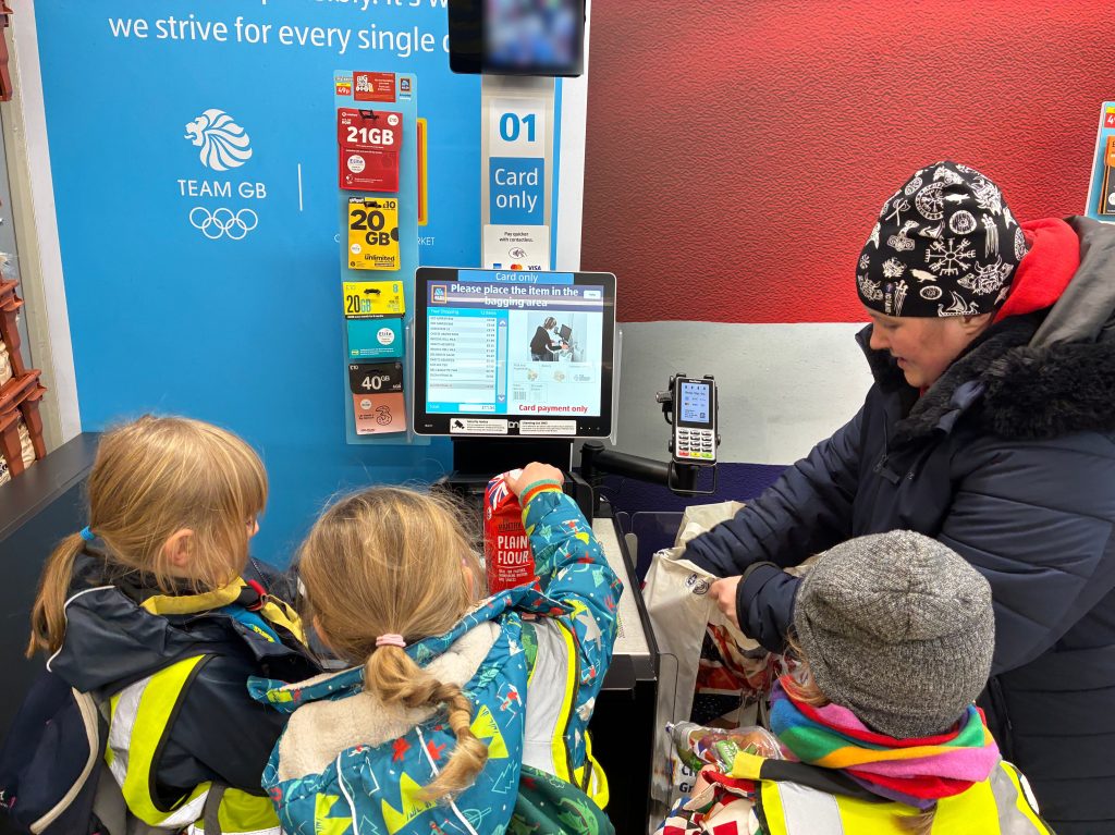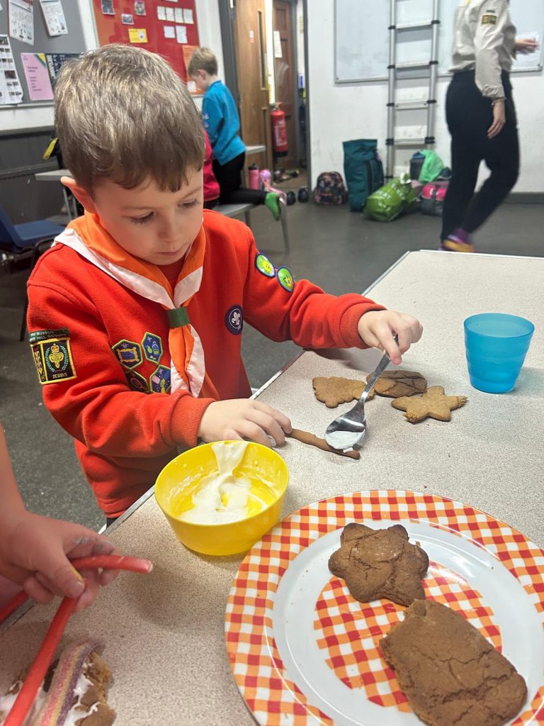 The groups met at the supermarket and went shopping for their meals, ingredients for gingerbread biscuits, and some sweet treats. They then made the very muddy walk back to the scout hut before a spot of lunch.